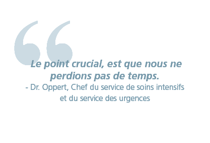 Dr. Oppert explique : « Nous savons que, dans le cas de patients atteints de sepsis, le temps est une question de vie ou de mort. Chaque retard d'une heure pour mettre en place le bon traitement (fluides, antibiotiques, analyses de microbiologie, etc.) augmente le risque de mortalité de huit pour cent. »